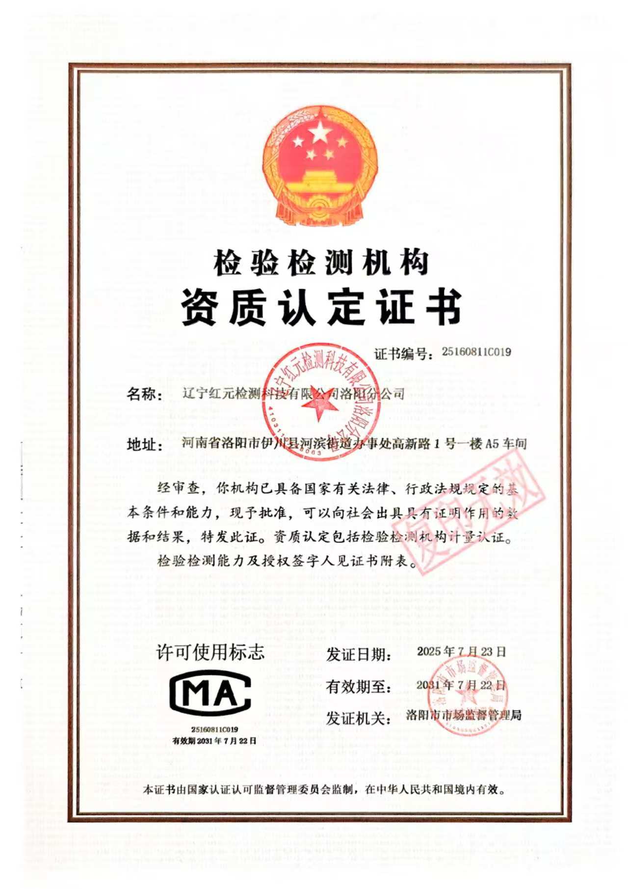 辽宁红元检测科技有限公司洛阳分公司