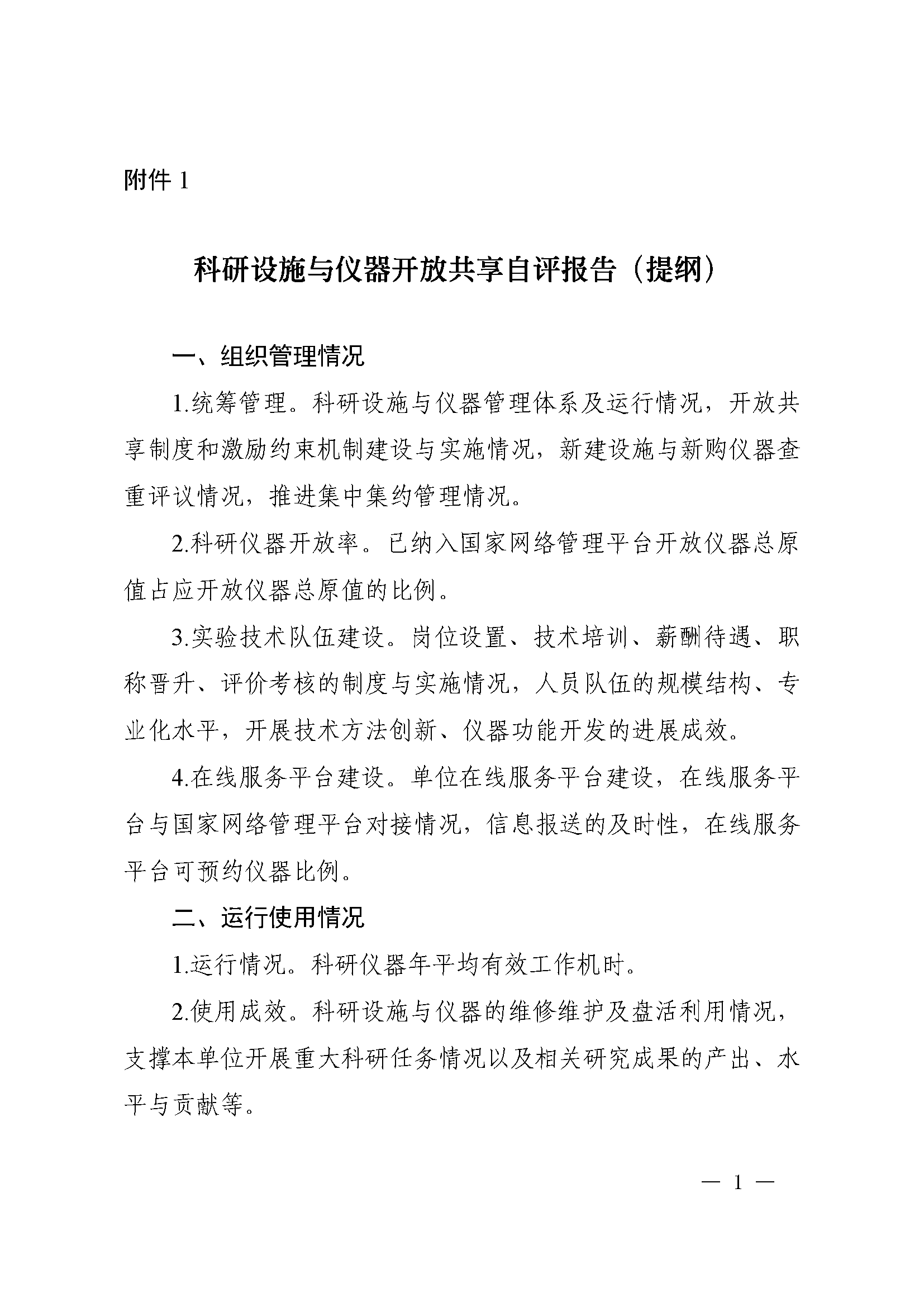 附件:1.科研设施与仪器开放共享自评报告(提纲)